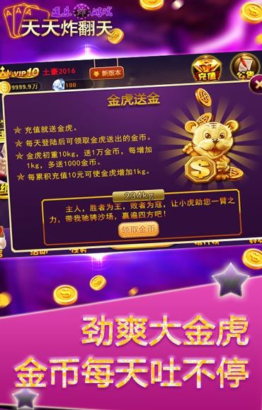 天天炸翻天官方正式版6.7.3这款属于棋牌娱乐类手机游戏,游戏简单易操作,游戏玩家可以简单入门,游戏玩法也是十分的有趣,丰富多彩的游戏感受,也有许多的趣味性的动画场景等候着用户的挑战。当前的版本是最新版,根据用户的反馈,优化了游戏的一些画面和相关操作,有兴趣的小伙伴们一定不能错过了哦,赶紧来下载游戏一起畅玩吧!