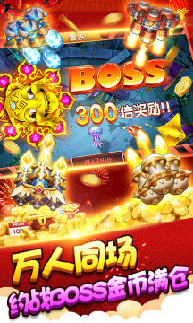 6、锻造强力千倍炮,狂暴分身特色技能炫动全场,追杀堵截神秘海底BOSS,一炮捕鱼,称霸深海!