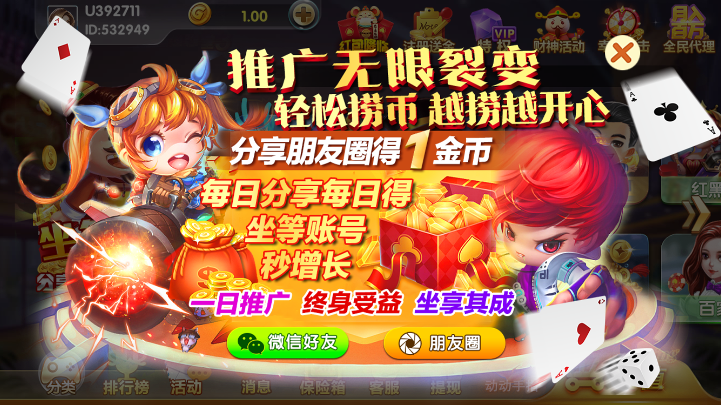 支持财神活动,每一位玩家都可以在游戏中通过财神活动来获得大量的金币奖励。多种多样的玩法,每一款都是线下非常受欢迎的,点击匹配即可自动开局游戏,随时随地都可以,没有任何的限制哦。超强大的游戏平台,安全可靠,不会出现任何掉线的情况,运行稳定流畅不卡顿,绝对满足你的各种游戏体验!