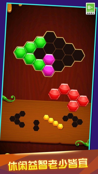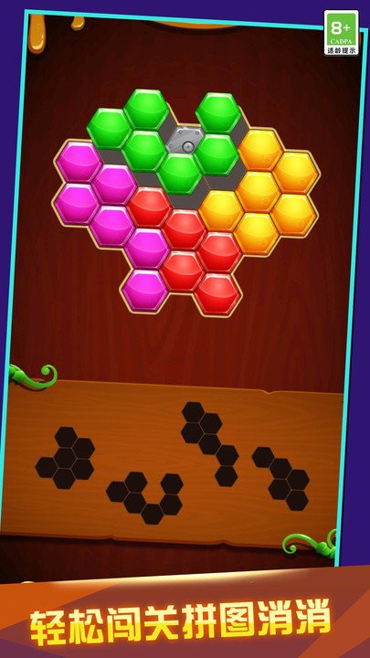1、创新六边形拼图:突破传统方形拼图模式,采用六边形拼接机制。每个拼块拥有6个连接面,大幅提升挑战趣味性。