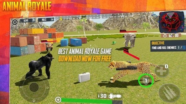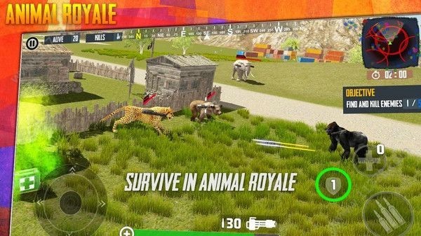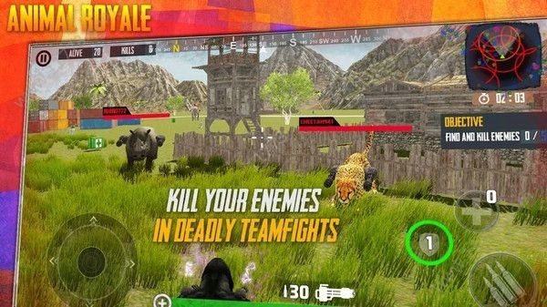 4、开始任务后,看顶部倒计时和MISSION 1标识,通过动物模型战斗,关注血量与技能状态。