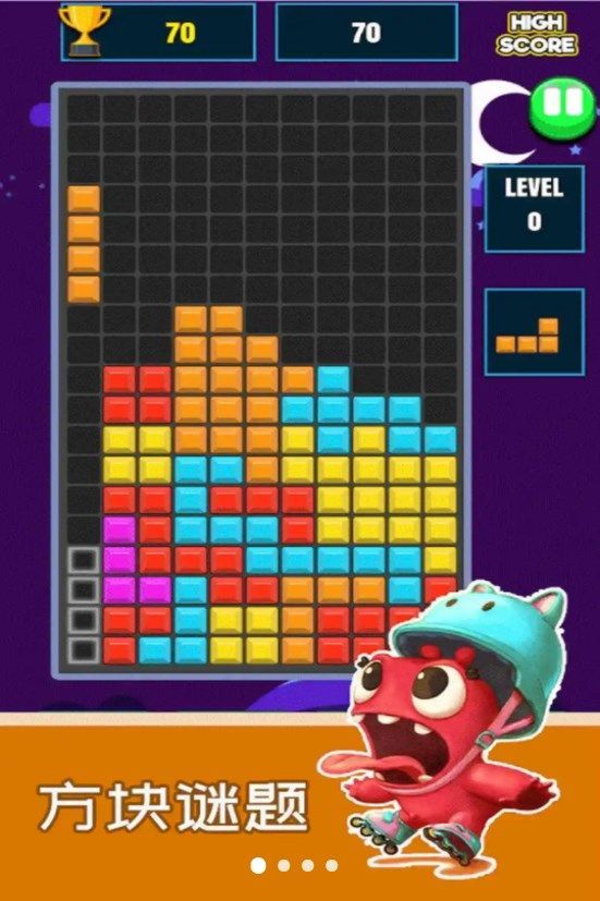 3.玩家需将0块放置于网格中,该行或列消失,玩家得分。